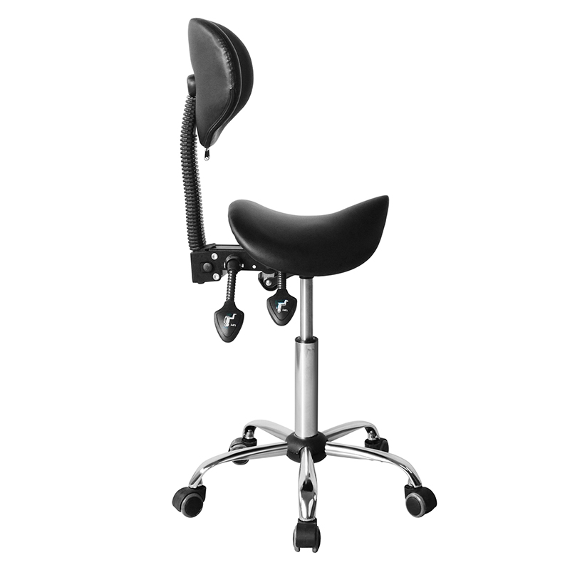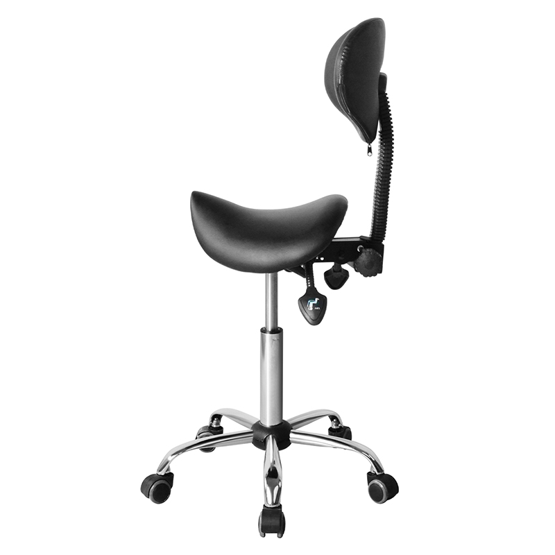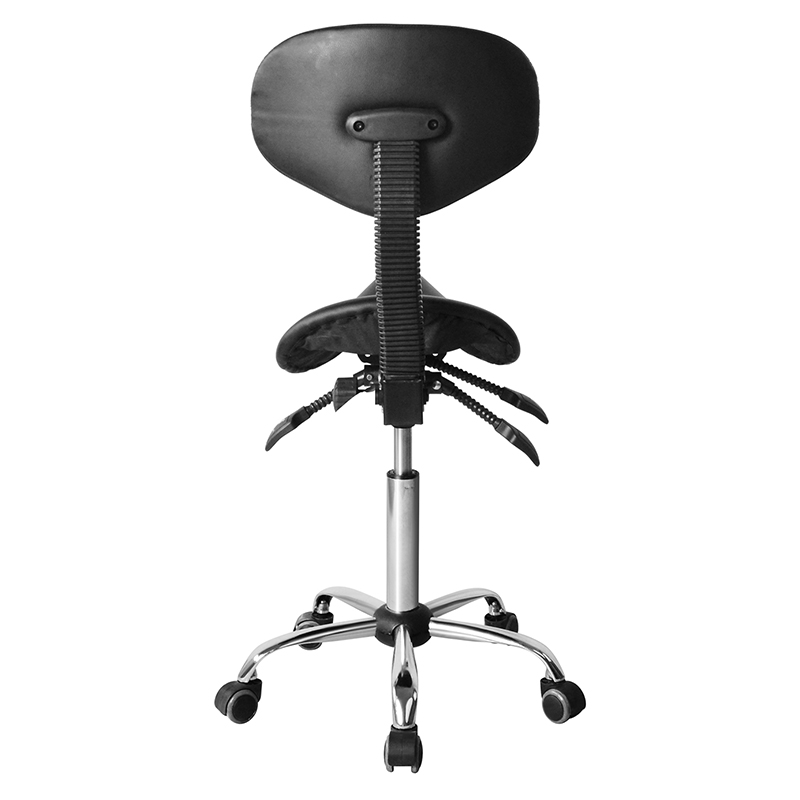 Tuolissa on keskimmäinen selkänoja, joka on ergonomisesti suunniteltu tarjoamaan tasaista tukea selkään, hartioihin ja niskaan. Satulan muodon ansiosta käyttäjä voi istua tuolilla asennossa, mikä estää rasitusta tai epämukavuutta.
